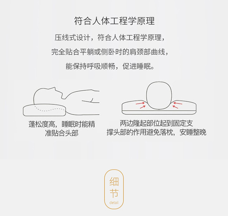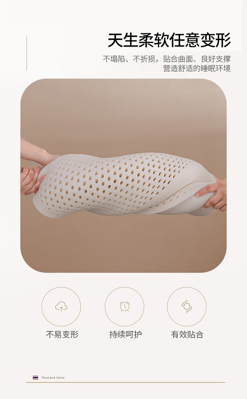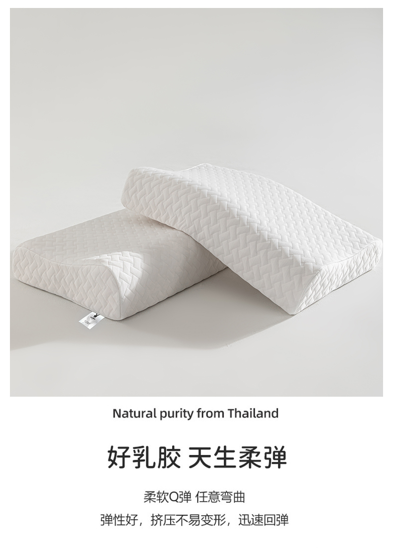 规格:40*60cm 面料:针织棉+网纱 填充:泰国进口乳胶 执行标准:GB/T22843-2009 安全类别:GB18401-2010 B类 1.乳胶是一种天然材质,其原液是直接从橡胶树皮中滴落下来的乳胶汁物理发泡加工一次成型,有天然乳香气息,含量高达90%以上乳胶成分,多纬蜂窝状气孔,较其他枕芯更为舒适,快速散发人体睡眠中余热和湿气 2.枕头高弹力,贴合人体脊椎生长曲度,仰睡侧睡都可以,给您更好的承托力