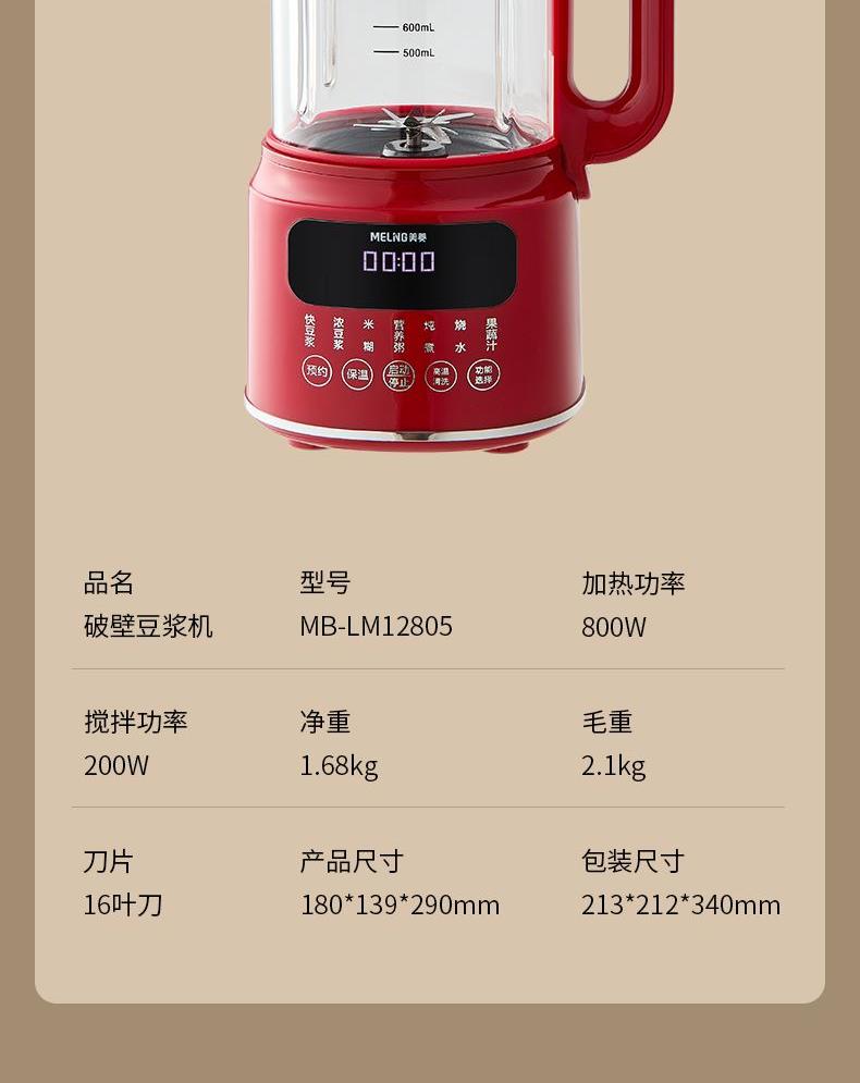 1. 1.2 L大容量,可供1-4人使用。. 16叶精钢刀组,细腻无渣。