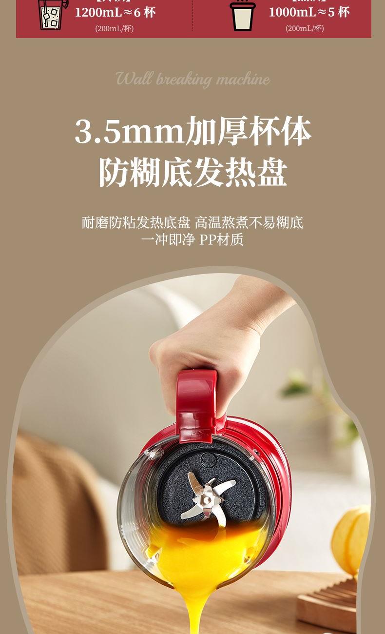 5. 3.5mm加厚杯体,防糊底发热盘,食品级PP材质。. 一键清洗,快速便捷。