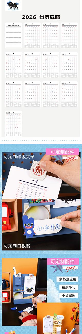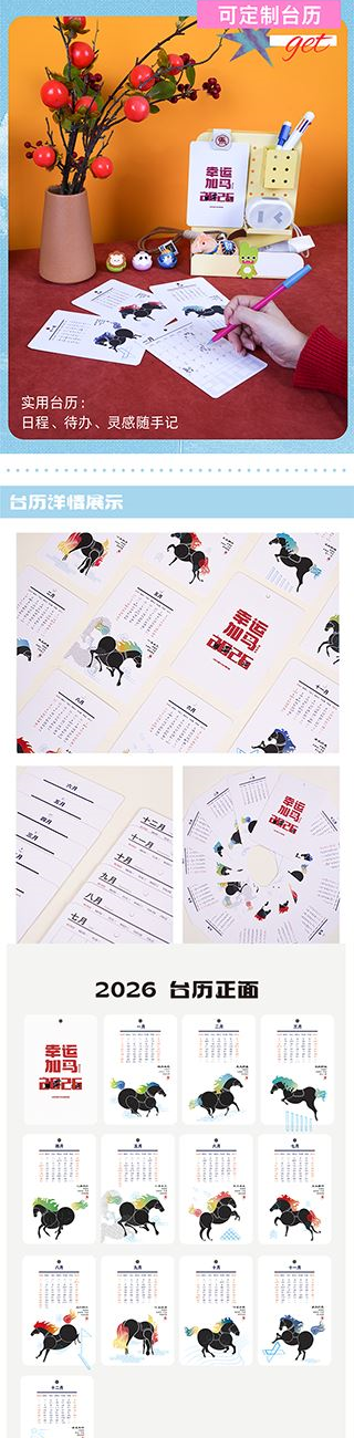 贪吃猫文创2026马年好运日历洞洞板桌面收纳双色可选