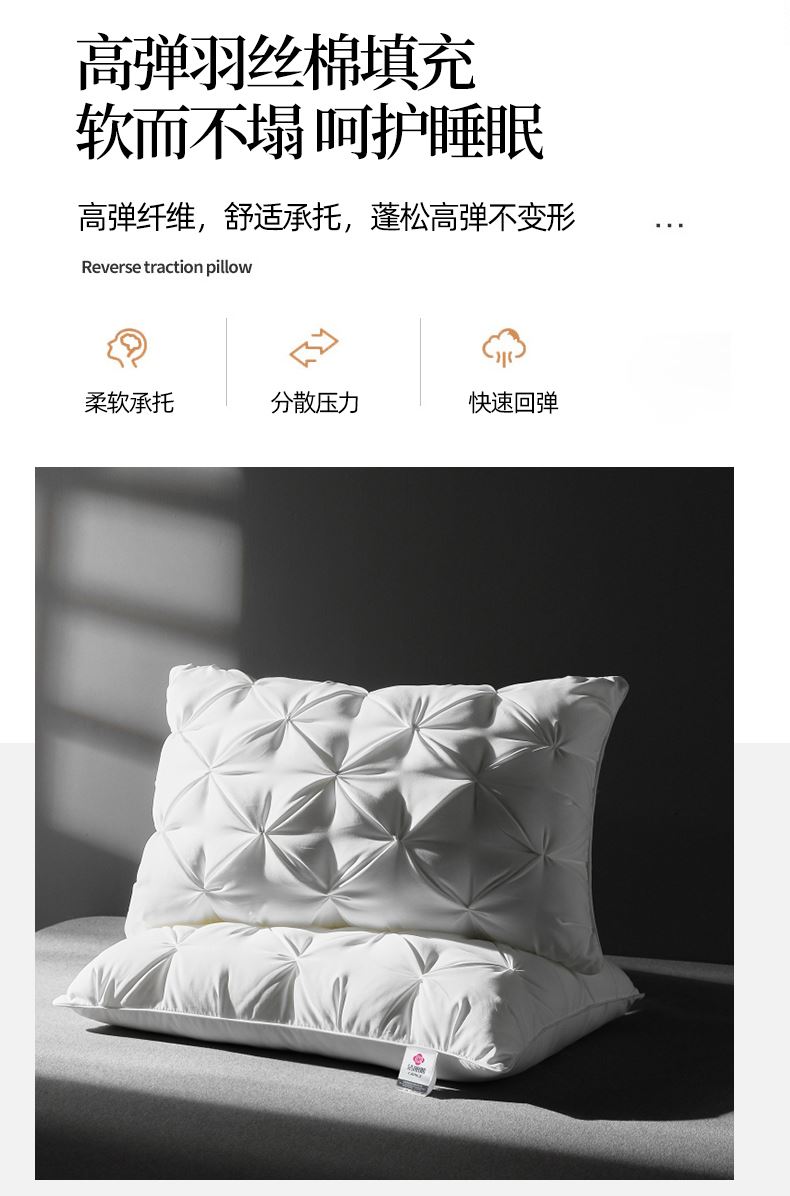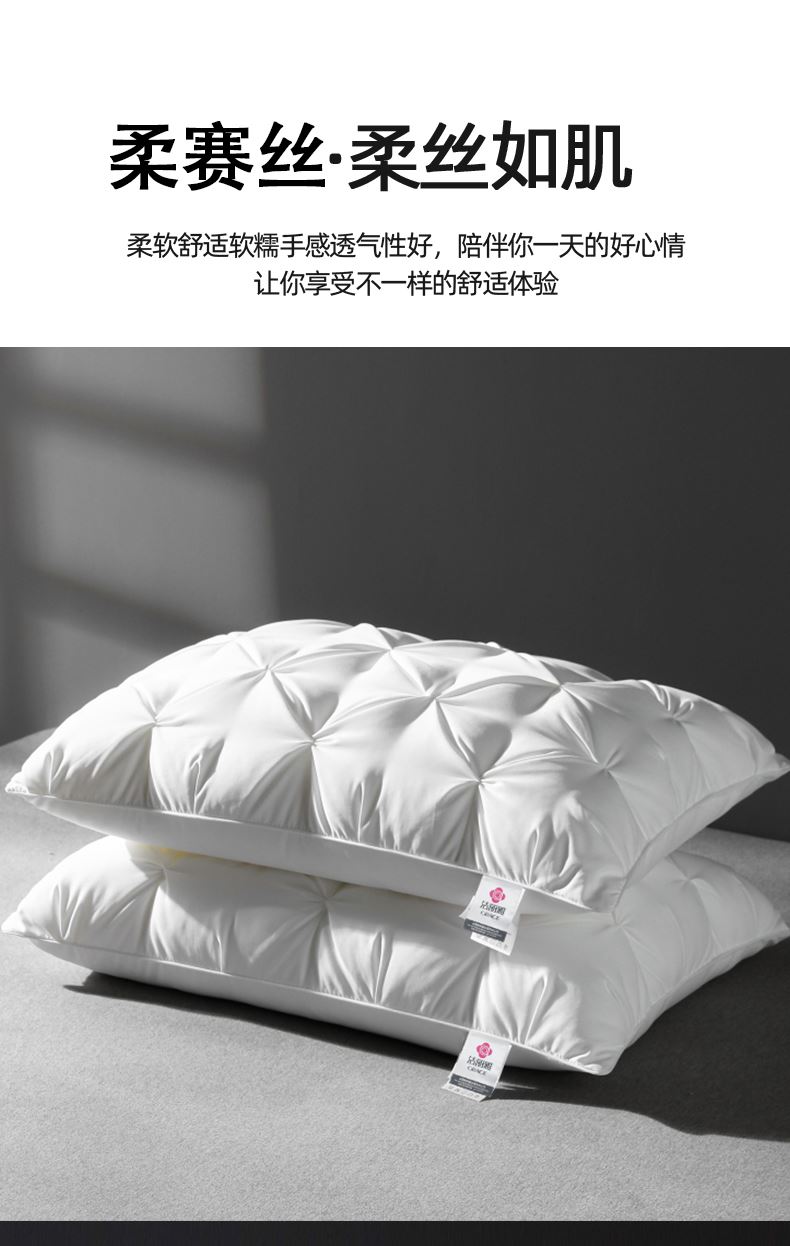 规格:48*74cm 面料:柔赛丝 填充:羽丝棉 执行标准:GB/T22796-2021 安全类别:GB18401-2010 B类 1.柔赛丝面料柔软舒适,良好的呵护颈椎,舒适的睡眠时光。面料透气网眼,不闷热,稀释透气。惊喜绗缝,优质绗缝工艺,不抛料,品质保障。 枕头高弹力,贴合人体脊椎生长曲度,仰睡侧睡都可以,给您更好的承托力。