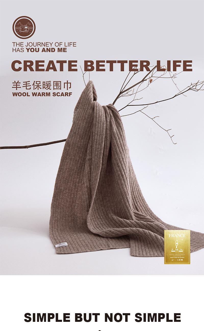 法国啄木鸟羊毛保暖围巾-咖色ZWJ-00003