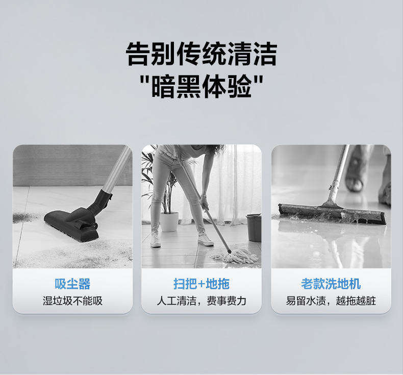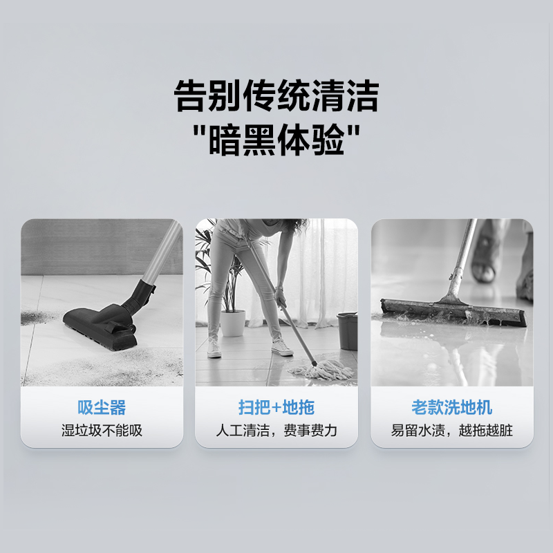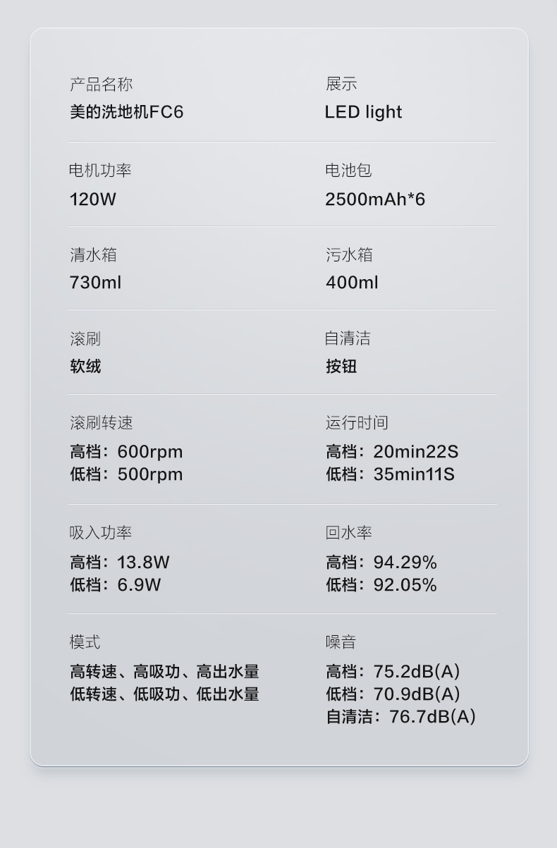 产品尺寸:250 x 290 x 1200 mm 包装尺寸:235 x 335 x 920 mm 产品毛重:7kg 1、吸拖洗一体,吸力7kpa, 干湿两用,一次搞定全屋清洁; 2、一键自清洁,工作结束后无需担心清洁问题; 3、35min长时间清洁,充满一次电满足180平面积清洁!