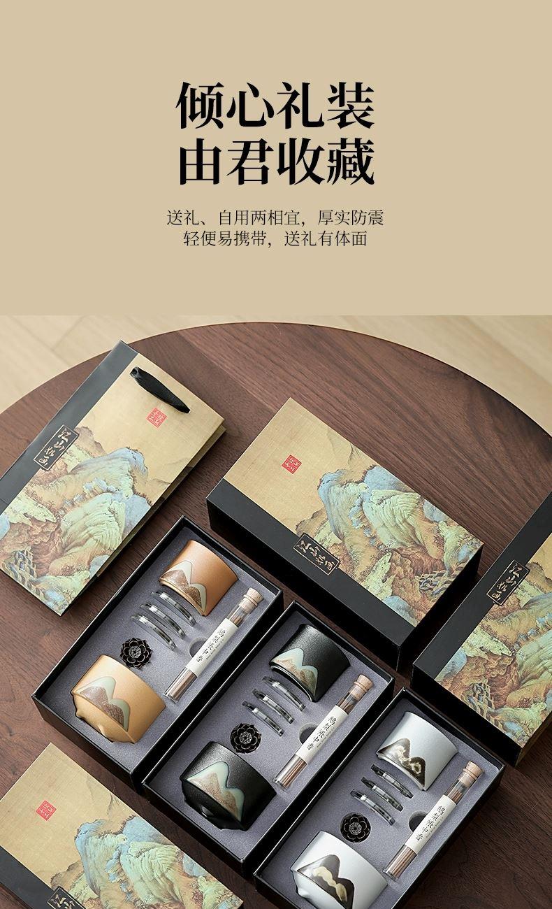 尾桥下窑江山如画香炉主人杯小套装茶事香道套装年会伴手礼