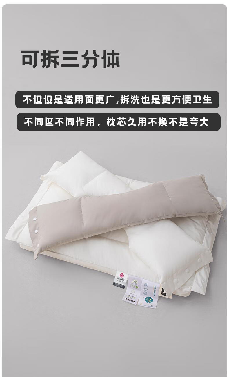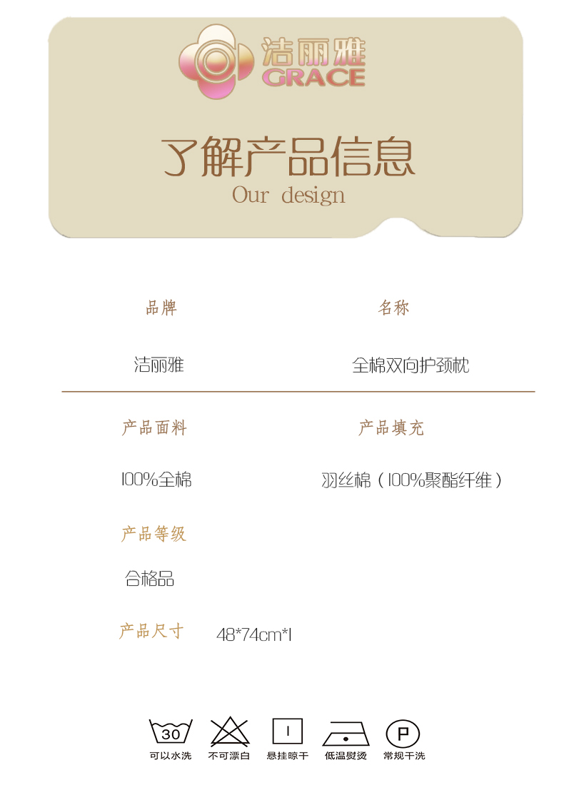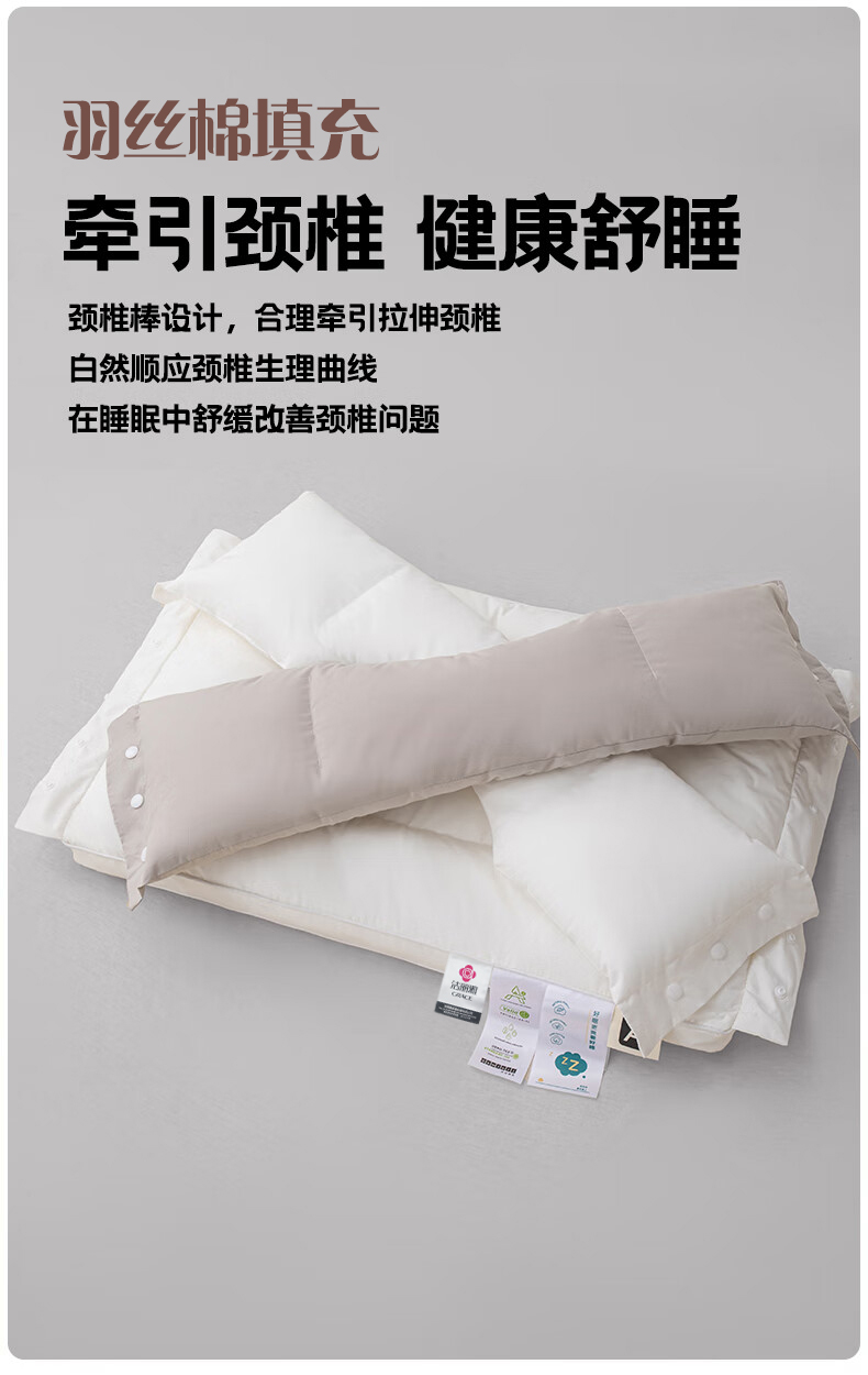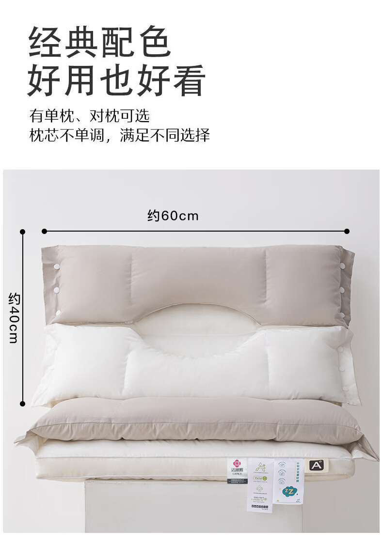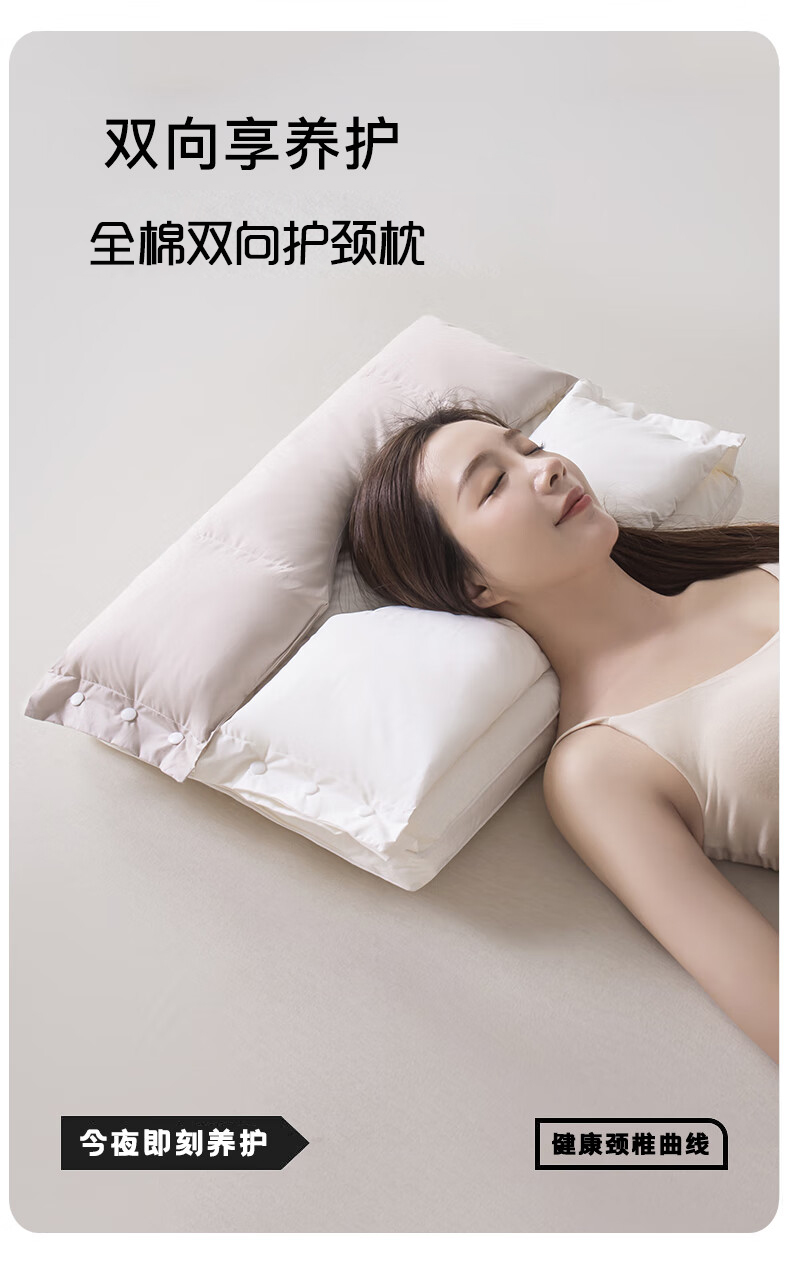 规格:48*74cm 面料:全棉 填充:羽丝棉 执行标准:GB/T22796-2021 安全类别:GB18401-2010 A类 1.柔软舒适,精选优质全棉面料,良好的呵护颈椎,舒适的睡眠时光。面料透气网眼,夏天不闷热,稀释透气。惊喜绗缝,优质绗缝工艺,不抛料,品质保障。 2.枕头高弹力,贴合人体脊椎生长曲度,仰睡侧睡都可以,给您更好的承托力。
