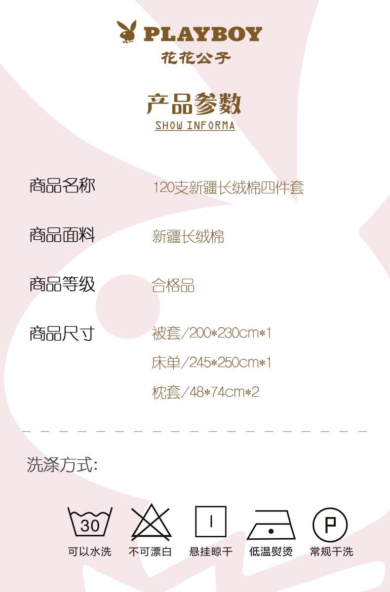 花花公子120支新疆长绒棉四件套PB-25MT711