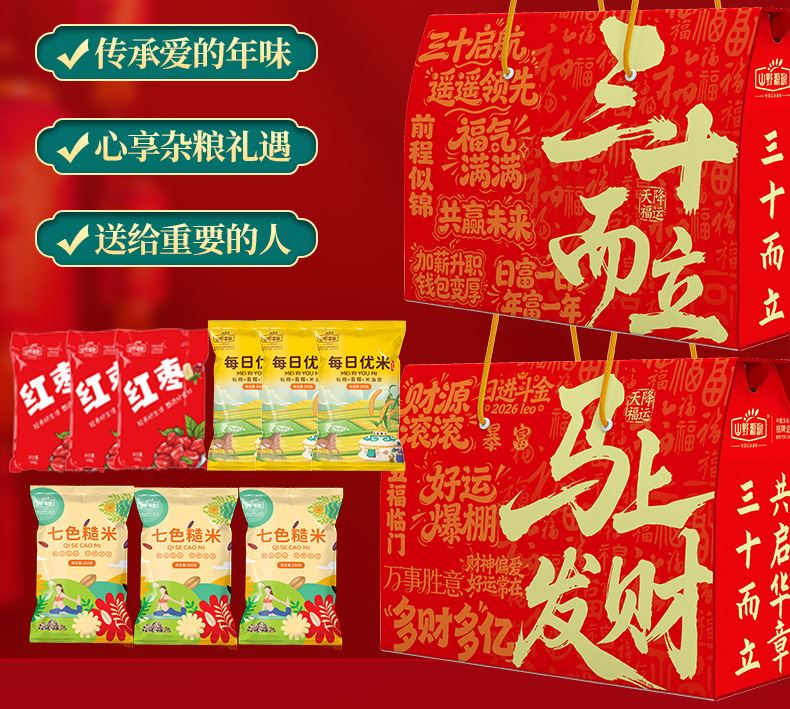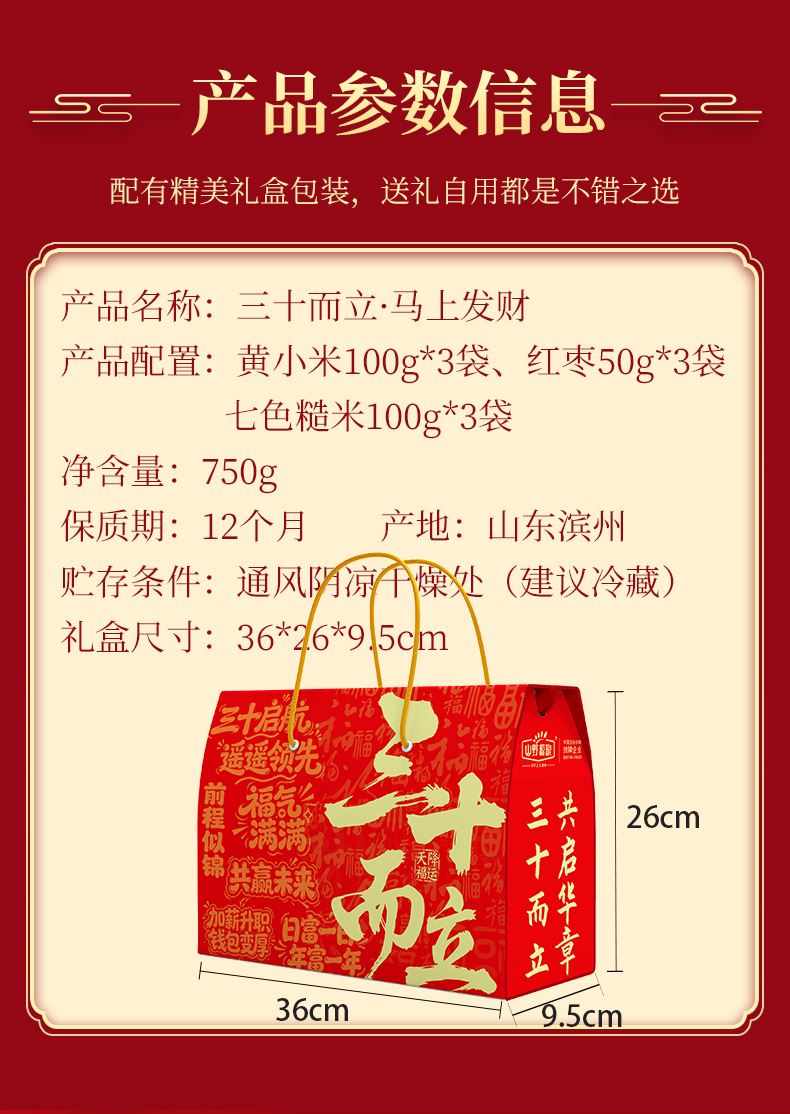 三十而立马上发财五谷杂粮礼盒时来运转马上暴富小米七色糙米红枣