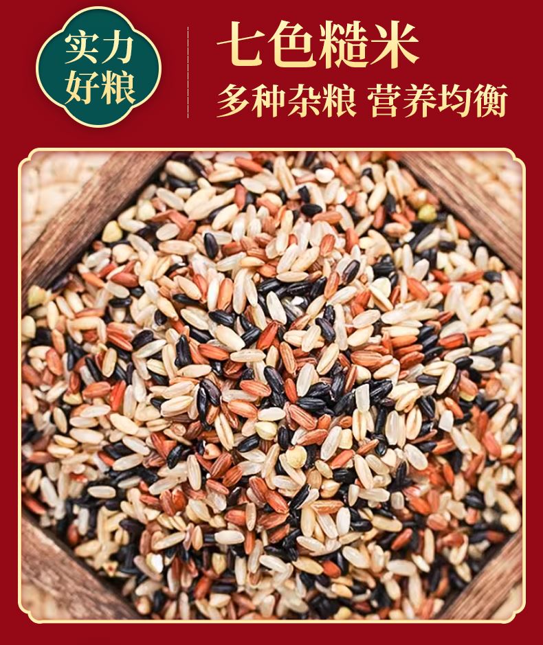 产品规格配置:七色糙米100g*10袋 盒尺寸:32*10*24cm 箱体积:0.107方 箱尺寸:63*34*50 箱重量:15.8kg