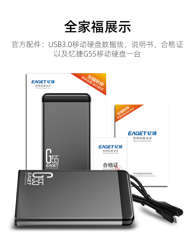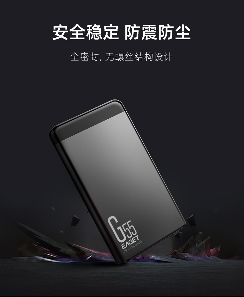 (EAGET)忆捷移动硬盘G55全金属存储高速防震2TB