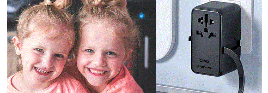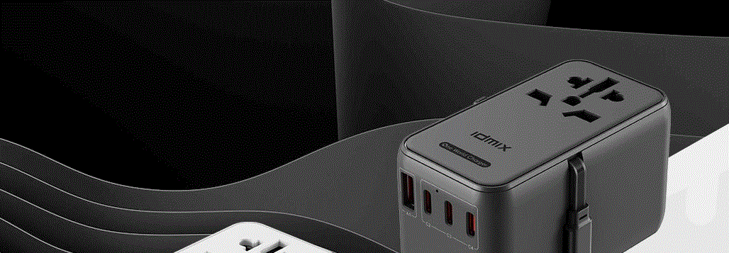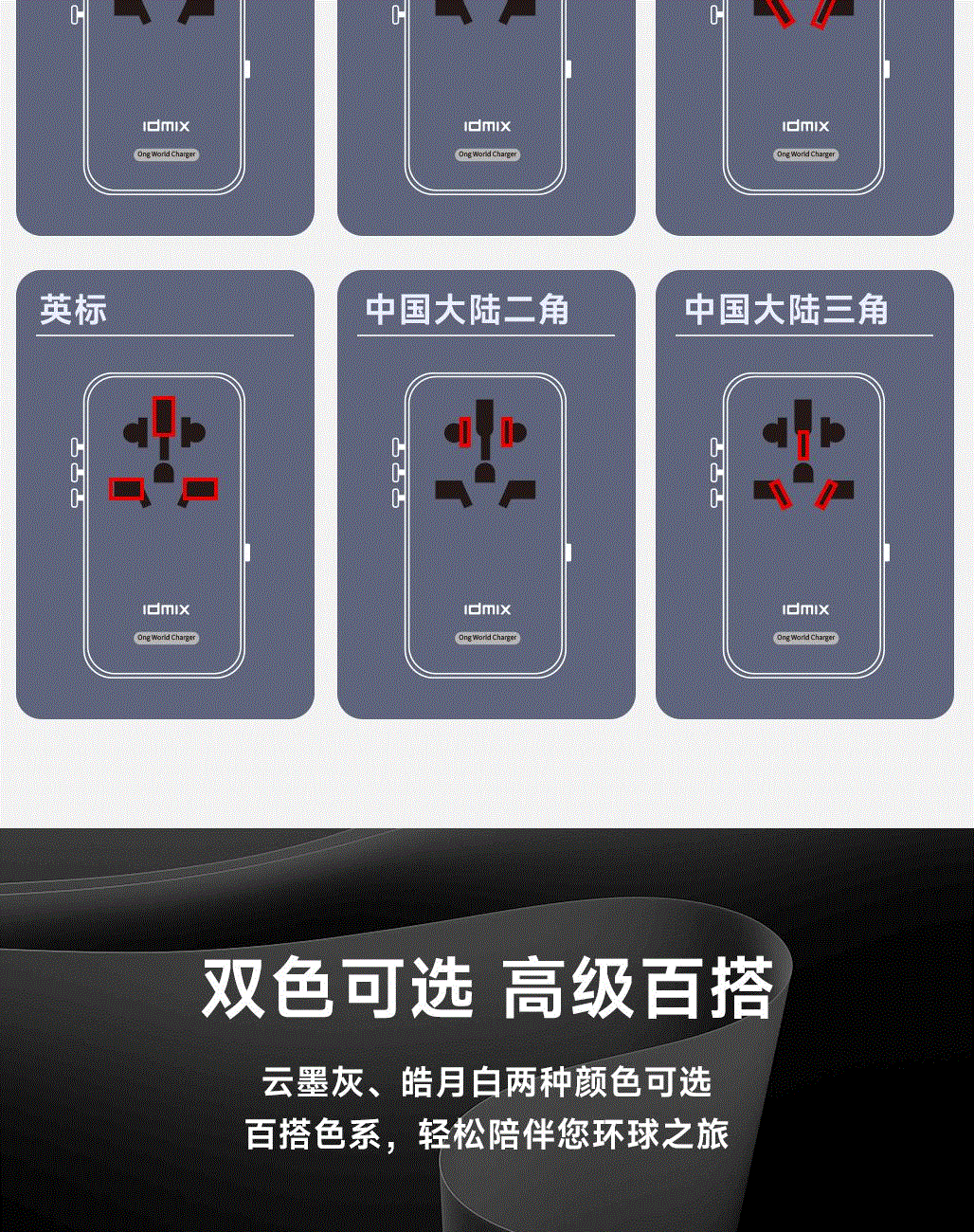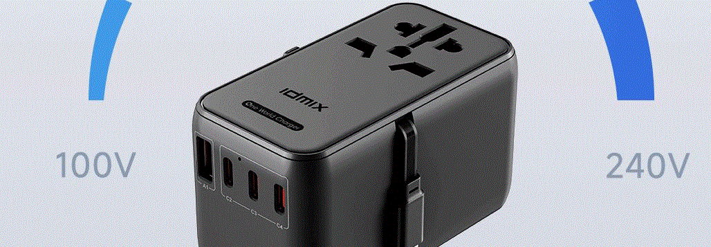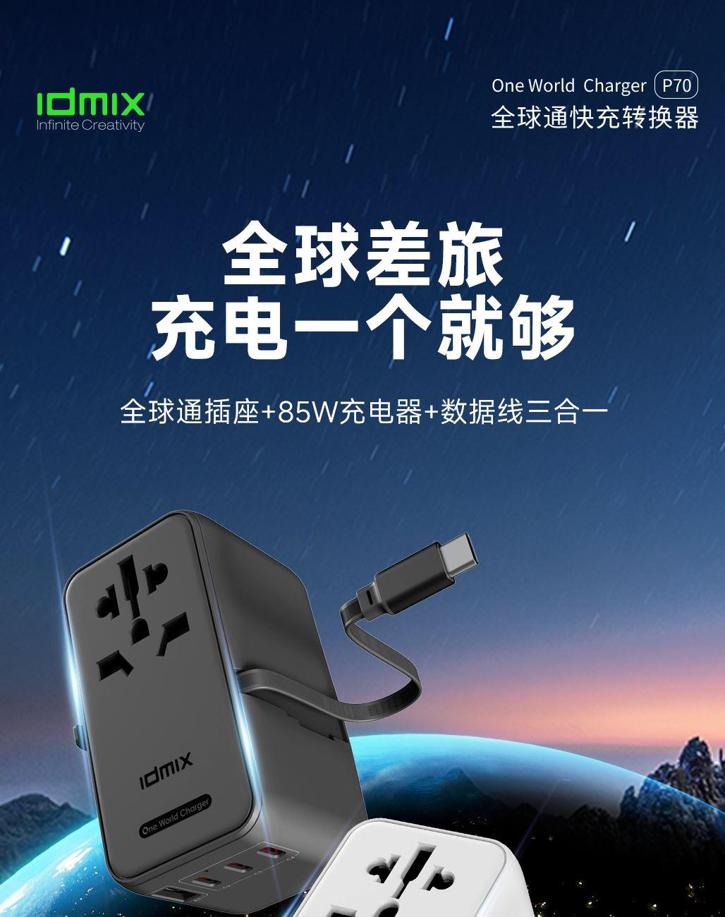 100V-250V宽电压设计,各国标准插头集成一体,轻松按推切换,三口85W快充 全球差旅充电一个就够
